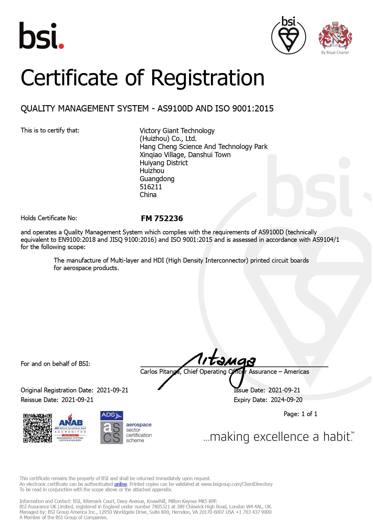AS9100D 航空航天质量管理体系