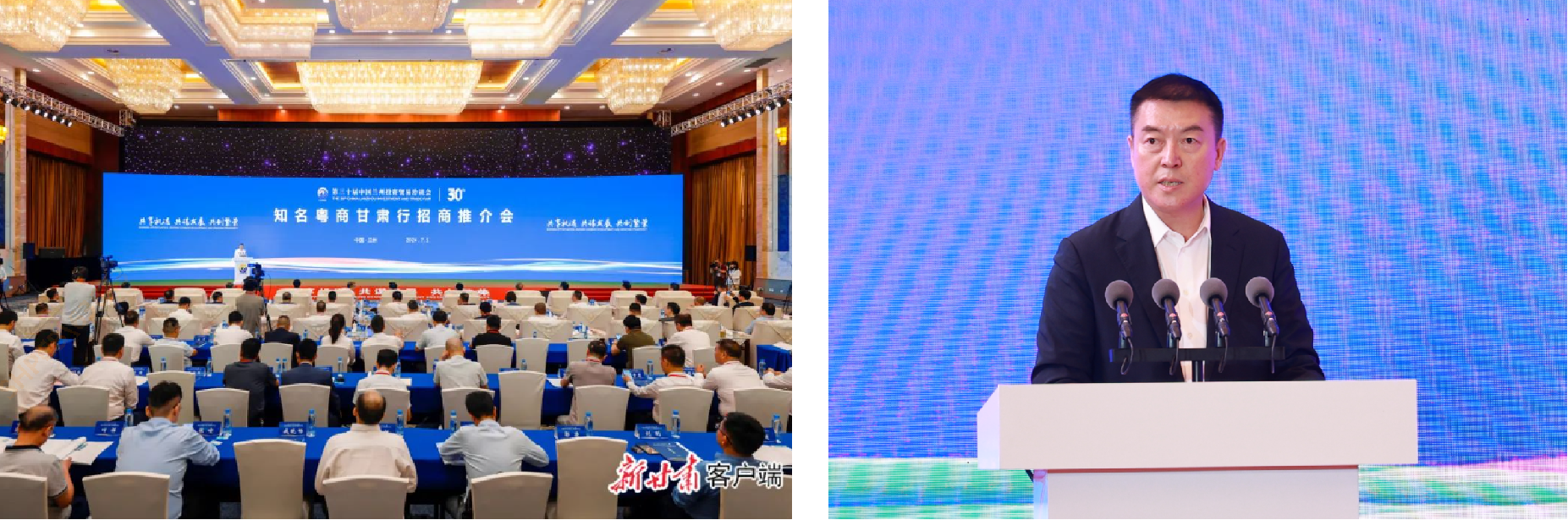山海不为远,陇粤一家亲。在第三十届兰洽会即将开幕之际,7月5日上午,知名粤商甘肃行招商推介会在兰州举行,共叙陇粤友谊、共商合作大计、共享发展机遇。甘肃省委书记、省人大常委会主任胡昌升、甘肃省委常委、省委秘书长张伟,甘肃省政协副主席贠建民、兰州市委常委、兰州市委书记张晓强等领导出席。甘肃省副省长雷思维主持会议。
