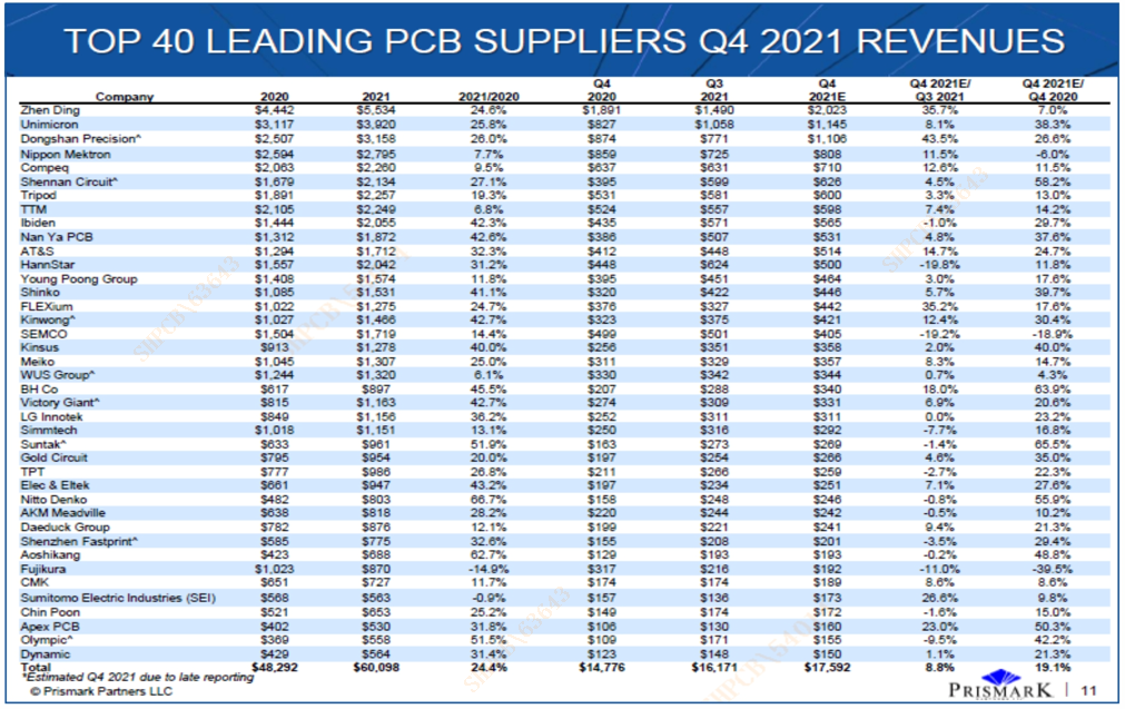 九游ninegame科技位列2021年Q4全球40强PCB企业第22名