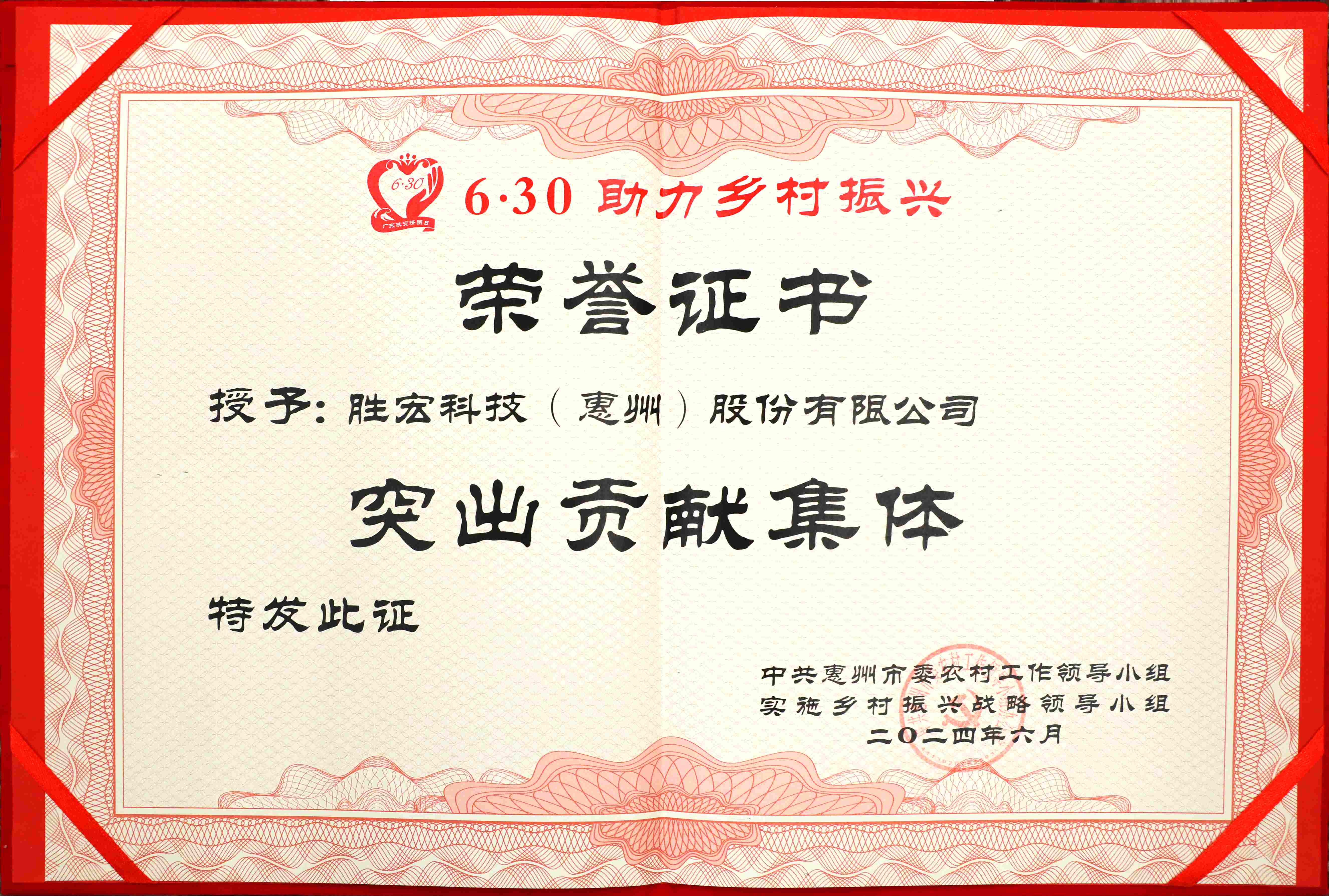 我司财务中心总监朱国强代表公司出席了此次活动,并上台领取了“惠州市2023年度‘6·30’助力乡村振兴突出贡献集体”的荣誉牌匾与奖状。这是我司连续第二年获此殊荣,充分体现了九游ninegame科技在履行企业社会责任方面的积极态度和坚定决心。这份荣誉的背后,是九游ninegame科技以实际行动助力乡村振兴的生动写照。